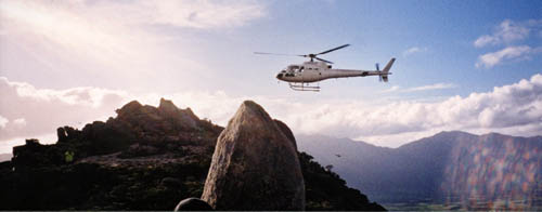 Since then we have trotted through an artificial lake to confront Saruman at Orthanc - Saruman (in the person of Christopher Lee) was starring in Star Wars: Episode II across the Tasman Sea in the Olympiad city. So we yelled to a yellow tennis ball representing the mad maia. Domero is controlled offscreen like a circus horse with the visual aid of two whips in the hands of Don Reynolds standing to one side of the camera. Sometimes the signal is reinforced with his name but Domero can walk, stop and stand on his mark, a square meter of plank on which he bangs his hooves. To one side is Blanco who, it seems, is needed to focus Shadowfax's attention, horses being sociable. I can't think why an understudy watching him perform should be considered a comfort. But then Domero for all he can recognise "Action" and pre-empt his cue to walk, stop or bang his plank has no idea he is acting nor, more to the point, that the heavy weight and hobbit squirming on his spine are trying to act. We manage because Don is persistent and Domero has learnt well over their six months training together. Don Reynolds has worked with many horses in movies but I can't think he admired any of them more than he seems to respect Domero.
