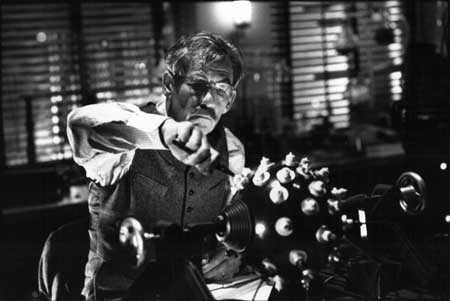 Words by Ian McKellen"Who knows what evil lurks in the hearts of men? The Shadow knows!" Spoken by Orson Welles, these words introduced the American radio series on which the screenplay was based, but were unfamiliar to me when Russell Mulcahy cast me as Penelope Anne Miller's father Dr. Reinhardt Lane. He was the stereotypically eccentric inventor, innocently experimenting with an all-powerful bomb which is stolen by the movie's villain (John Lone). My scenes were mainly with Tim Curry, the film's comic relief, renewing a partnership we shared first on Broadway in Peter Shaffer's Amadeus (1980/81). It was thrilling to work at Universal Studios, which I had previously known only as a tourist. Between scenes I was free to wander round the backlot. I cheekily slipped into the shed that houses King Kong when its doors opened to let in the tourbus. I hid opposite the giant gorilla and was noticed by only one young boy whose alarm was so intense that he fortunately kept quiet about my intrusion, so I could follow the bus out of the building and slip innocently back into The Shadow studio next door. I was asked to record Orson Welles's words to accompany the movie's trailer. To date I haven't been paid. None of my scenes was with Alec Baldwin, The Shadow himself. Our characters only communicated telepathically — I think. I was never too sure of the plot's mechanics. So we met a couple of times amicably enough considering he had just hit the New York headlines by calling a horse-cabby in Central Park "Faggot". Penelope Anne Miller looked, sounded and behaved like a Hollywood star of my youth. I was a little in awe and we didn't say much to each other. She was very busy fielding the media's interest in a love affair turned sour. Jonathan Winters was a gentleman on set and an unending clown up there with Jackie Gleason. Then the mask would slip and he wanted to talk about London and the English landscapes that he loved. John Lone lived up to his name. His professional concentration was intense and only his assistant was allowed near him on set. The Chinese tradition of the actor being led to the stage by a helper was charming to behold. Increasingly 2nd assistant directors on movies have taken on the nanny role and won't trust the actors to find their own way to work. Presiding over this menagerie of talents, Russell Mulcahy was a relaxed ringmaster. We were all caged in by the script and I had a further obstacle, nerves about being in a Hollywood movie. Russell gave us all confidence that this lark would work; and it does. — Ian McKellen, 0ctober 2000